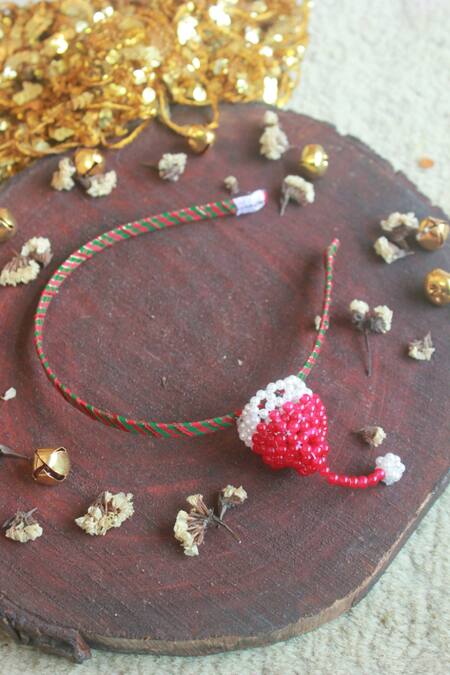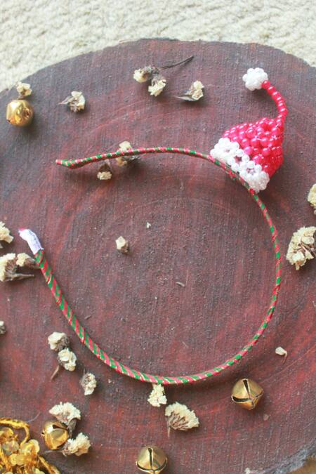 Red hairband with pearl, crystal glass beaded Santa's hat in scarlet & ivory.