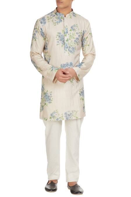 Buy_Sva By Sonam & Paras Modi_White Silk Printed Kurta And Pant Set_Online_at_Aza_Fashions