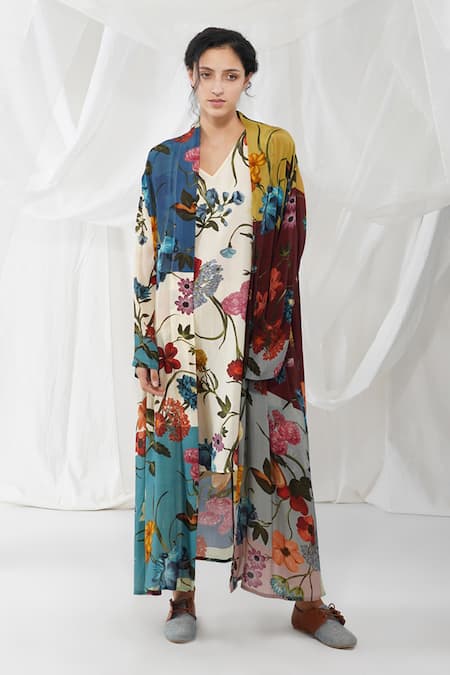 Multi Color 36%viscose, 64%cupro Floral Motifs Lapel Collar Iro Print Jacket
