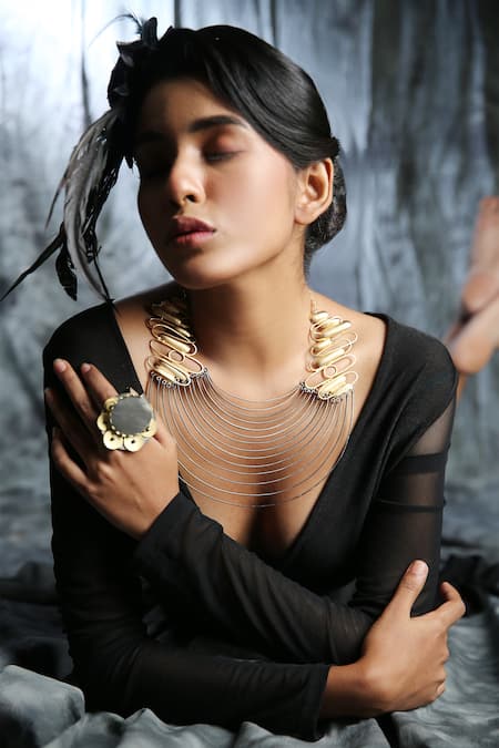Gold geometric cutwork necklace featuring dual polish and handcrafted design