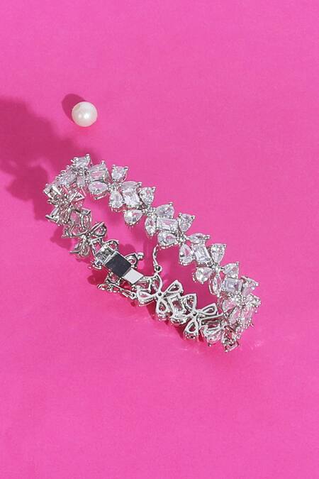 Rhodium plated bracelet embellished with zircons, set in alloy.