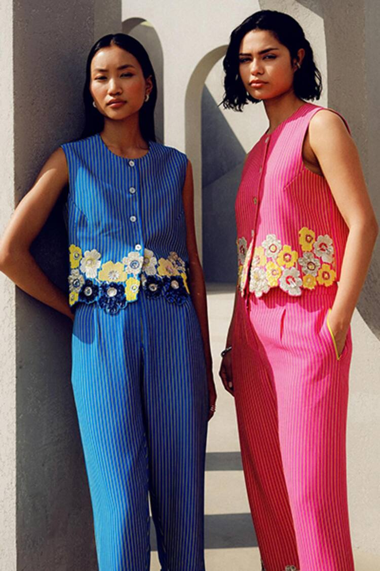 Orange Linen Embroidery Round Neck And Ivory Designer Coord Set