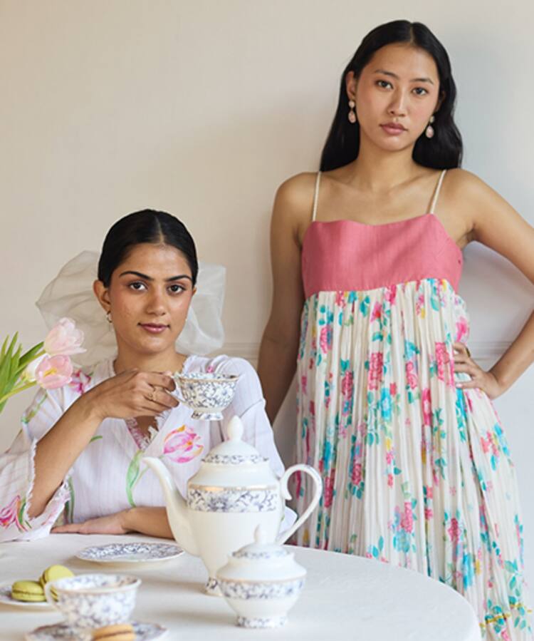 Multi Color Cotton, Poplin Collared Floral Utopia Midi Dress